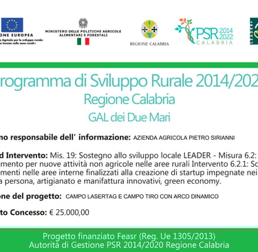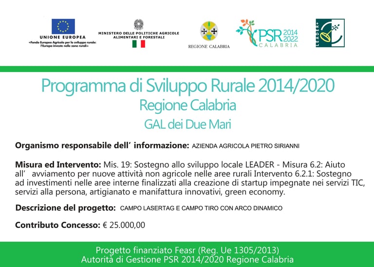 Progetto finanziato dal PSR Calabria 2014/2020 – Misura 6.2.1 – GAL dei Due Mari, con il contributo del FEASR (Regolamento UE n. 1305/2013), nell’ambito del sostegno alla creazione di startup innovative nelle aree interne.